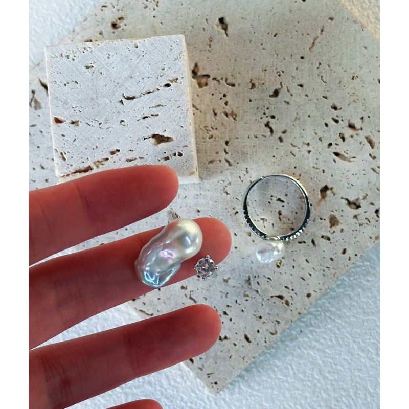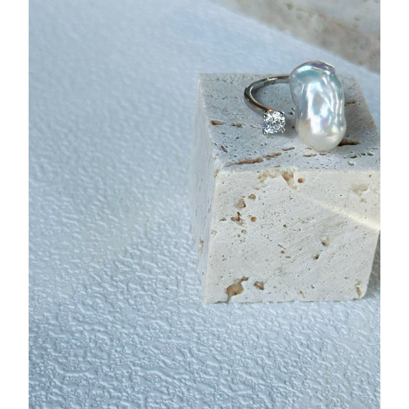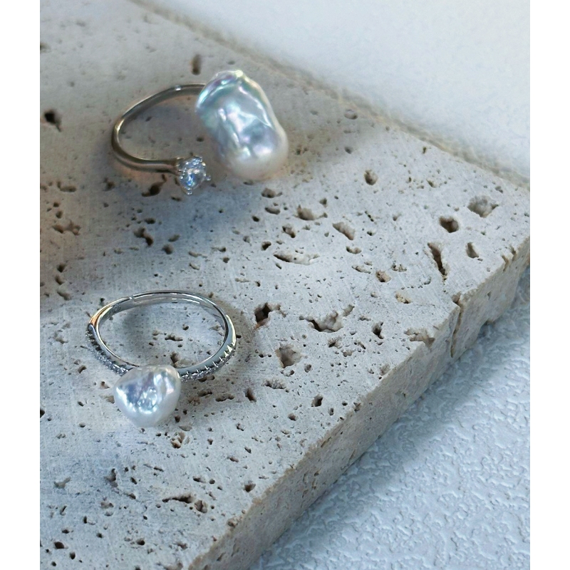 Wholesale Silver Blue Pearl Ring, Baroque Toi et Moi Ring, Grey Pearl Ring Wholesale, Unique Baroque Pearl Jewelry, Adjustable Silver Ring, Cool Tone Jewelry Trends
